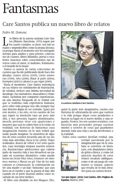 Pedro M. Domene ha reseñado en el suplemento Cuadernos del sur del Diario de Córdoba (sábado 6 de febrero) el libro Los que rugen de Care Santos.