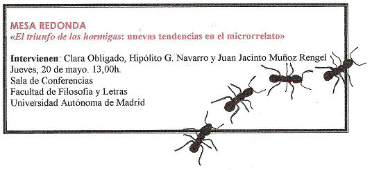 Se calcula que el jueves 20, a las 13 horas habrá una marabunta de hormigas en la Sala de Conferencias de la Facultad de Filosofía y Letras de la Universidad Autónoma de Madrid. Deberíais ser testigos…