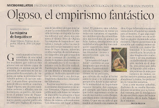hoy ha salido una magnífica reseña de La máquina de languidecer, de Ángel Olgoso, firmada por David Mayor en el suplemento Artes y letras del diario Heraldo de Aragón. Os reproduzco el final:
